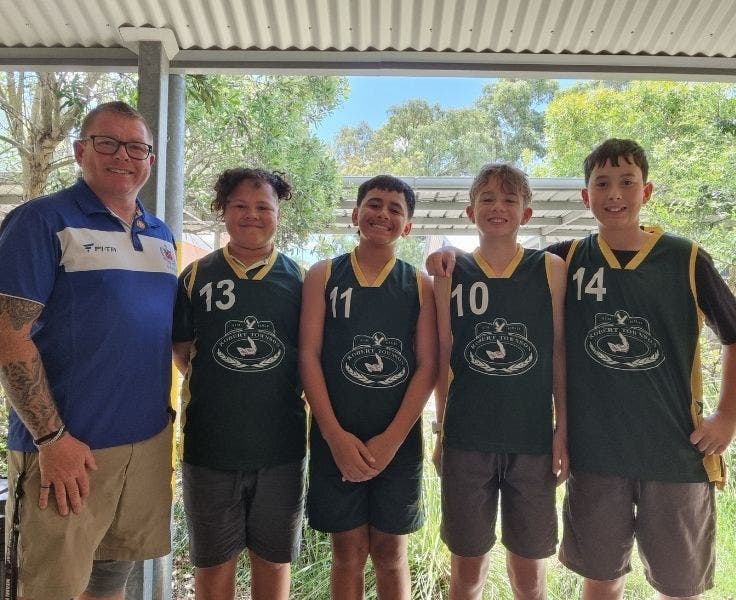 Congratulations to our basketball players. Our talented basketball players have proudly represented not only our school but also our zone, and were part of the winning team at the Zone competition. Mr Antony (coach) with, Kyori, Mason, Jaxson and Noah.